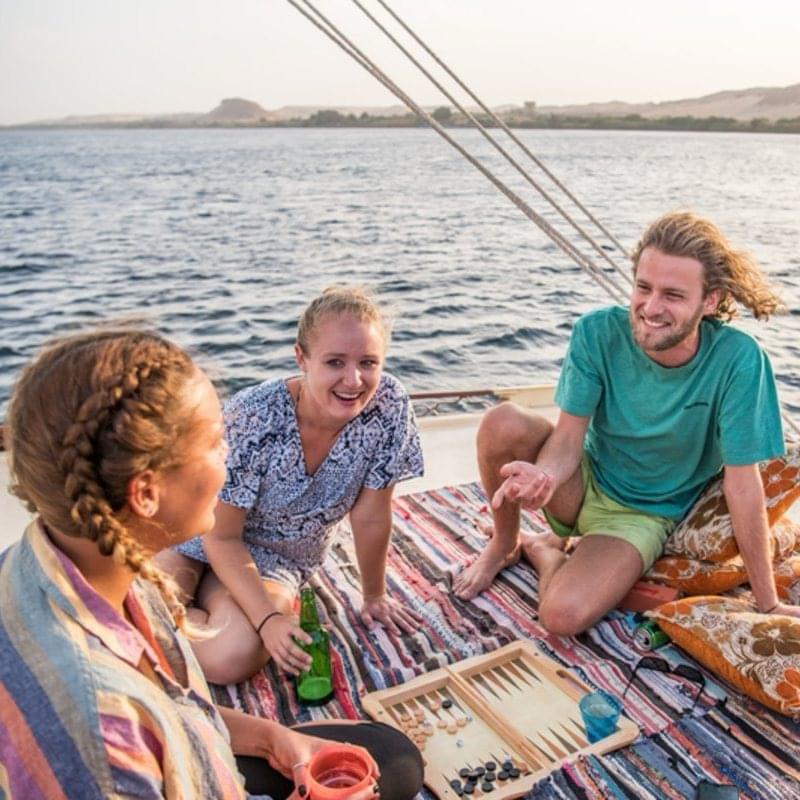 Board your traditional wooden sailboat equipped with comfortable cushions and enjoy the peaceful ride along the Nile. Watch Cairo’s skyline from the water, see local river life, and feel the refreshing breeze. We can stop for photos if you want shots of the city or your group on the boat. Just relax and take in the views as your captain handles the sailing.