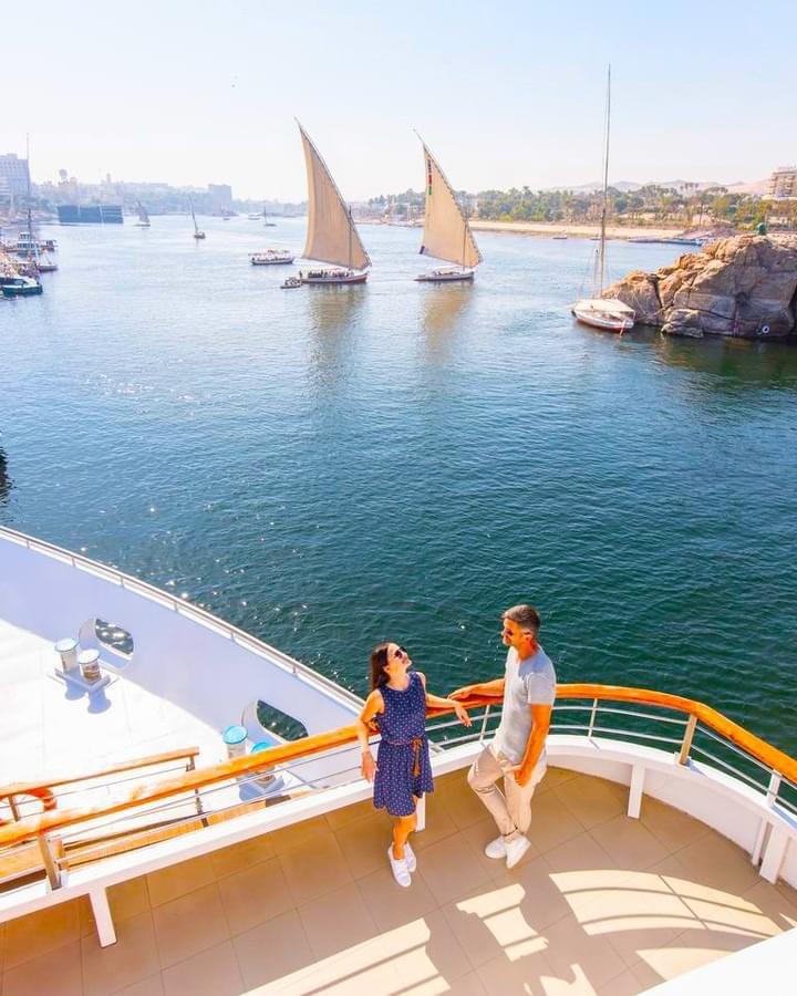 Our driver will collect you from your Cairo hotel or residence in a private, air-conditioned vehicle. The drive to the Nile marina takes about 15-30 minutes depending on Cairo traffic. We’ll arrive with time to spare so you can use facilities and get comfortable before boarding.
